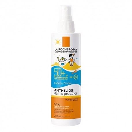 El Anthelios Dermopediatrics SPF 50+ Spray ofrece una muy alta protección para el rostro y el cuerpo contra los rayos UVA (PPD 25) y UVB, especialmente formulado para la piel sensible de los niños. Es ideal para aquellos con intolerancias solares y en condiciones de sol extremo. Su óptima protección SPF 50+ está reforzada contra los UVA, cumpliendo con el nivel más estricto que la recomendación europea, gracias a su innovador sistema filtrante patentado Mexoplexae, combinado con el Agua Termal de La Roche-Posay, que aporta propiedades calmantes y antioxidantes. Este formato práctico proporciona alta resistencia al agua, asegurando que la piel esté protegida contra las quemaduras solares, así como reacciones cutáneas y daños celulares provocados por los rayos UV.